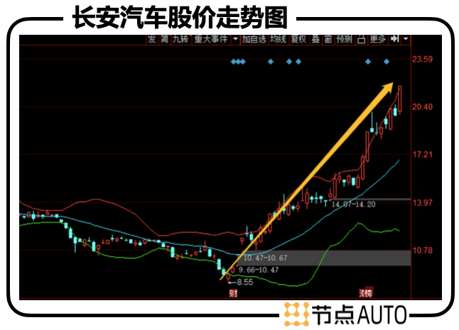 所以,在当前这波汽车板块大涨中,比亚迪突破万亿市值引得万众瞩目,而长安汽车140%的翻倍行情其实更为诱人。