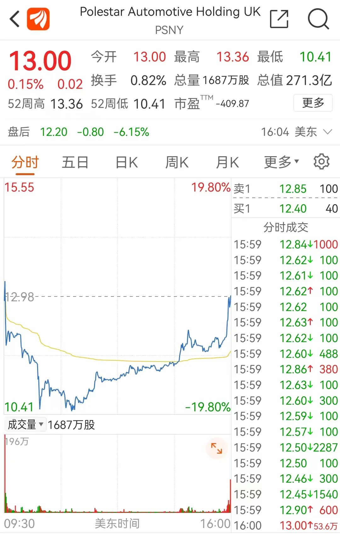 6月24日,Polestar极星通过SPAC(special purpose acquisition company,特殊目的收购公司,简称SPAC)成功登录纳斯达克,以股票代码PSNY进行交易。开盘价12.98美元/每股,总市值达270亿美元。