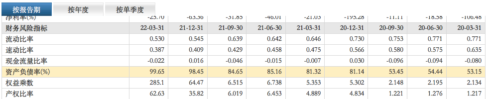 截至2021年末,豆神教育资产负债率已经高达98.45%,2022年一季度,该数字进一步攀升至99.65%,净资产则由0.97亿元,下降至0.54亿元。