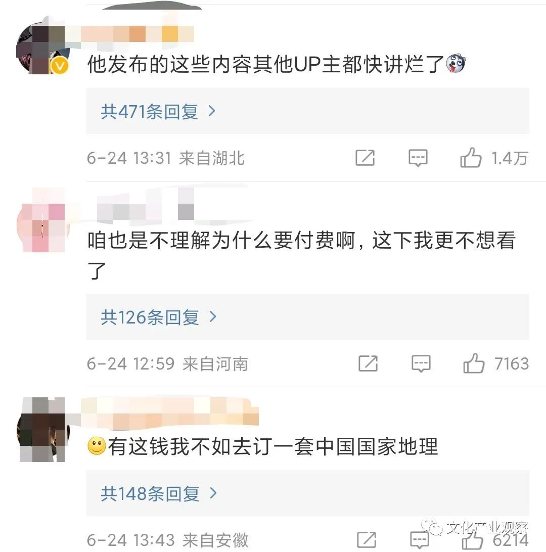 人们不反对视频收费,但如果你只是新瓶装旧酒,反复嚼吧别的UP主都讲烂的事,我又何必在你这里花钱看呢?借用网友的一句话:有这钱我还不如去订一套中国国家地理。