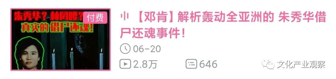 以邓肯此次付费合集为例,有平台分析说这次解析的“朱秀华借尸还魂”事件,时长不足20分钟,讲完主线故事后就是讲历史上两个类似的事件,最后回归到“科学”。实际上这就是一般事件类视频分析过程的基本节奏,并没有非常突出的新鲜猎奇之处。