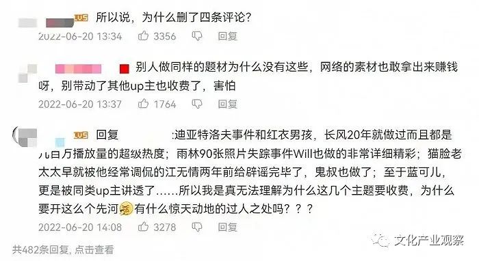 另外他预告要做的“重庆红衣男孩”、“迪亚特洛夫事件”等亦是如此。网友对此发出灵魂拷问:“迪亚特洛夫事件和红衣男孩,长风20年就做过而且都是几百万播放量的超级热度……雨林90张照片失踪事件Will也做的非常详细精彩……至于蓝可儿,更是被同类up主讲透了……所以我是真无法理解为什么这几个主题要收费,为什么要开这么个先河,有什么惊天动地的过人之处吗???”