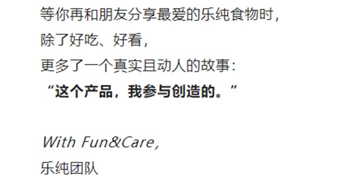 提到粉丝共创,很多人第一时间会想到乐纯。这个品牌几乎就是粉丝们“看着长大的”,用粉圈的话来说,这群“事业粉”从开始到品牌的冷启动,乐纯的奶源、生产过程、包装,甚至是店铺选址,每一步都在参与决策。