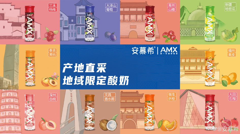 安慕希基于原产地直采、地域限定水果的产品创新点,除已经推出的丹东草莓、徐闻菠萝、新疆哈密瓜味酸奶外,还在微博发起“中国好水果”活动,在线征集AMX区域限定酸奶新口味,呼声最高的TOP3口味就有机会实现量产。