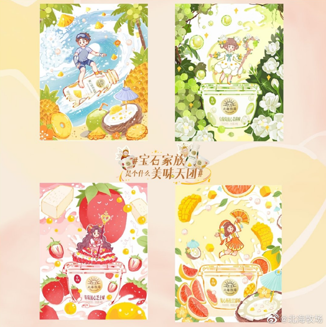 北海牧场则邀请网友对产品进行拟人化创作,内容需要结合产品口味、食材等特点,并最终在微博平台进行投票。画手们深度参与创作,让他们获得成就感的同时,也会加深对品牌的印象。