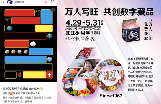 图片来源:小红书@瑞幸咖啡、微博@旺仔俱乐部
