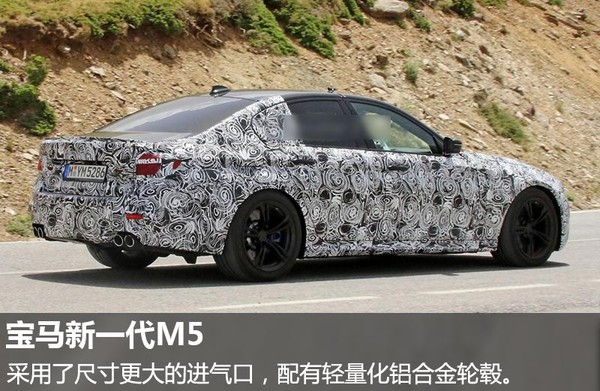 从最新曝光的谍照来看,宝马新一代M5将采用更加激进的前脸造型,同时保留有标志性双肾进气隔栅。新车采用了尺寸更大的进气口,并对头灯组布局进行了微调,配备有轻量化铝合金轮毂和高性能制动系统,尾部则使用了运动化双边共四出尾排。