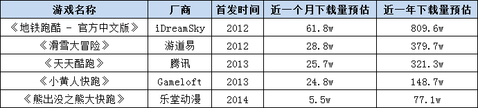 当然这并不是说在《地铁跑酷》之后,市场上就没有再出现过优秀的跑酷游戏了,事实上,自2012年开始,国内外游戏市场都曾出现过一些制作精良且收益不错的跑酷类产品。