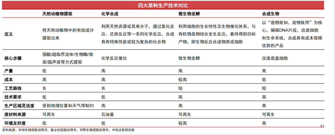 3、植物萃取技术和生物发酵技术是目前化妆品原料生产的主流技术。在这两方面,中国的华熙生物、贝泰妮、福瑞达等公司已经有一定的技术和专利积累,不输国际大公司。