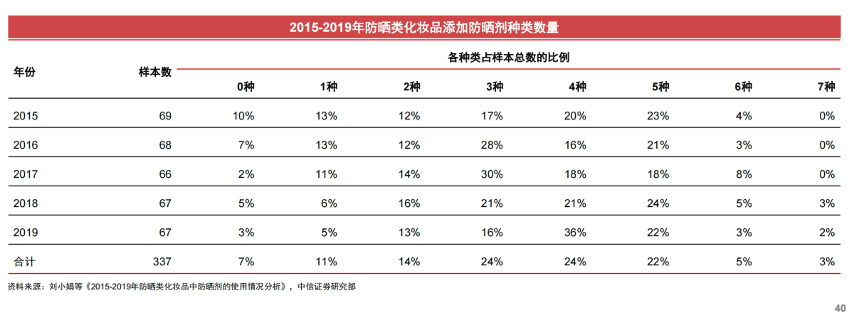 目前,防晒市场的科研方向主要集中在通过多种防晒原料的复配,达到更好的肤感和更全面的防晒效果。