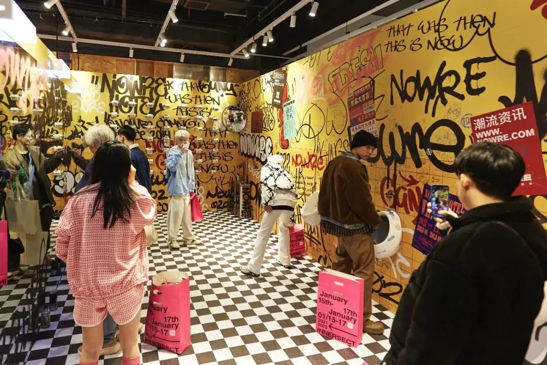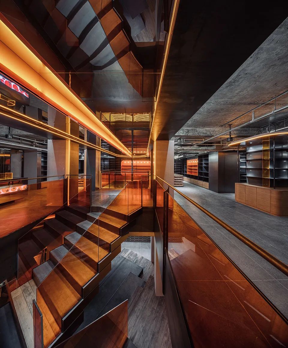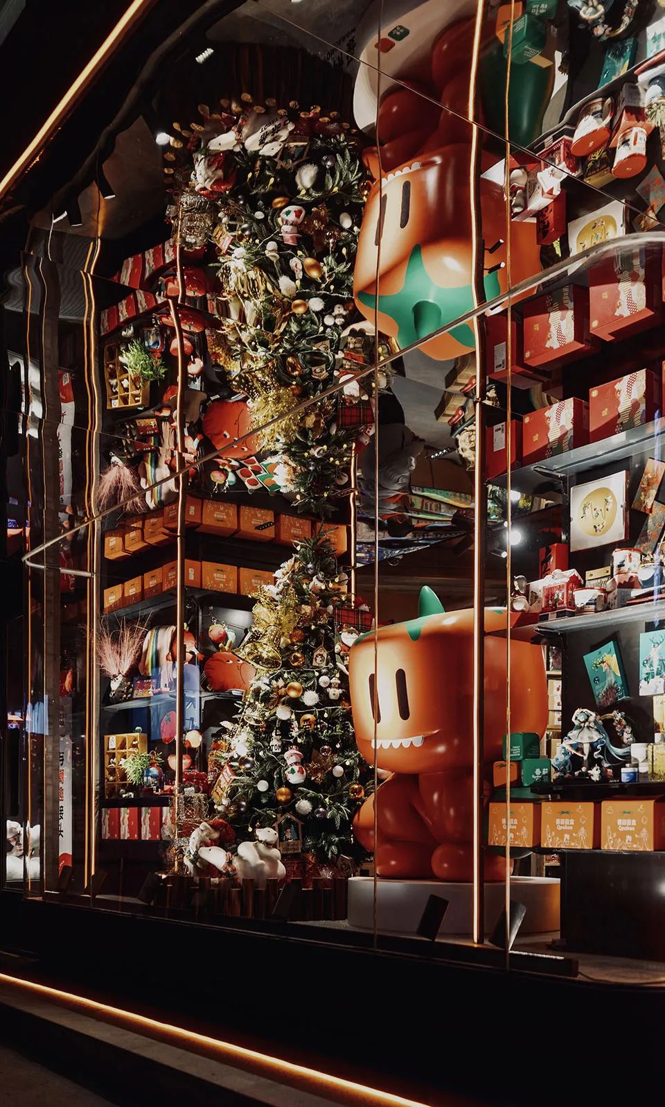 整个空间将潮玩、工业化、金属感、结构化等元素有机组合,采用品牌特有的IP色,形成了其独有的“暖工业”风格。
