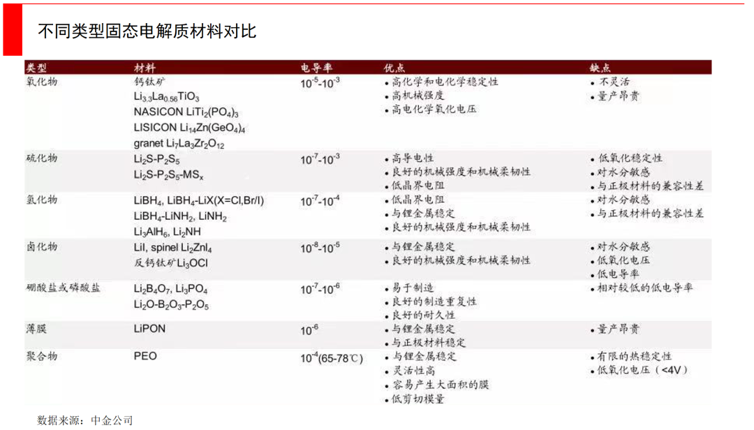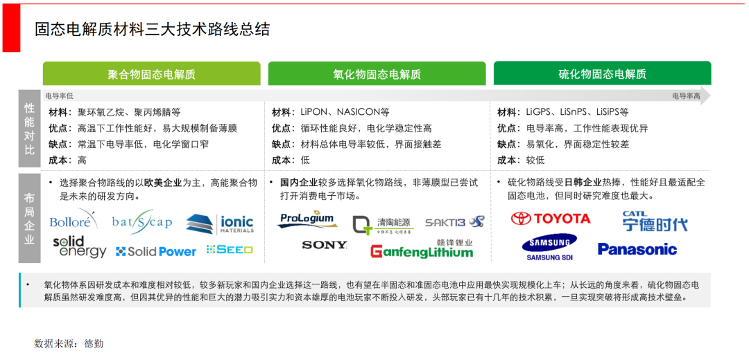 主流的三种技术路径分别是:硫化物、氧化物和聚合物。