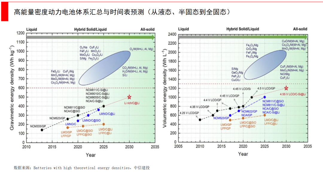 液态锂电池经历了几十年的发展,已经形成了三元/磷酸铁锂构成的正极材料体系,负极正在向硅基迭代,这些革新的确可以增加能量密度,但都是渐进式创新,而且理论天花板就在那里。