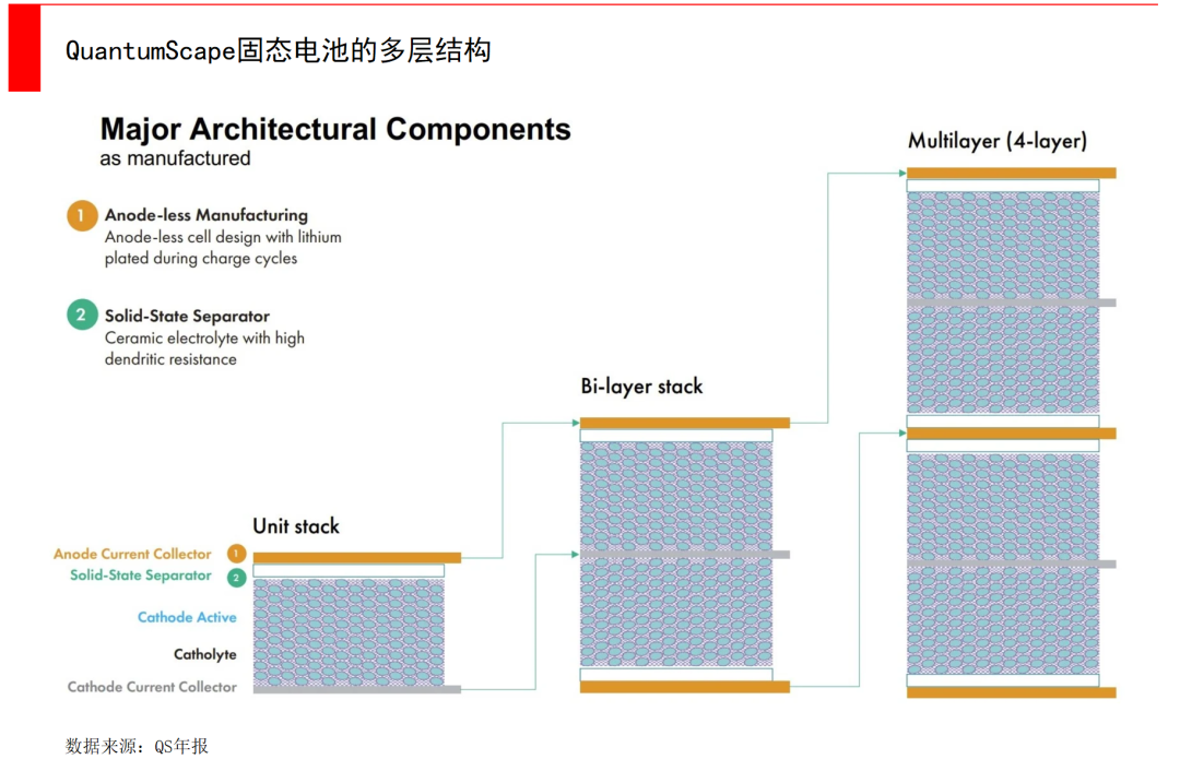 不过,虽然股价大起大落,但QS的研发依然在照常推进。QS的技术特点是:无负极设计、陶瓷材料的固态隔膜、多层堆叠。