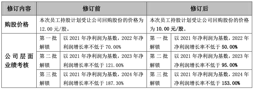 据公告,昌红科技2021年扣非净利润8763.50万元,以此为基础,原员工持股计划考核目标要求公司2022年、2023年、2024年扣非净利润分别达到1.49亿元、1.94亿元、2.52亿元,修改后只需要分别达到1.31亿元、1.71亿元及2.22亿元。下调幅度为1752.7万元、2278.51万元及2979.59万元。而公司2020年扣分净利润就已达到1.52亿元,高于2022年业绩目标。