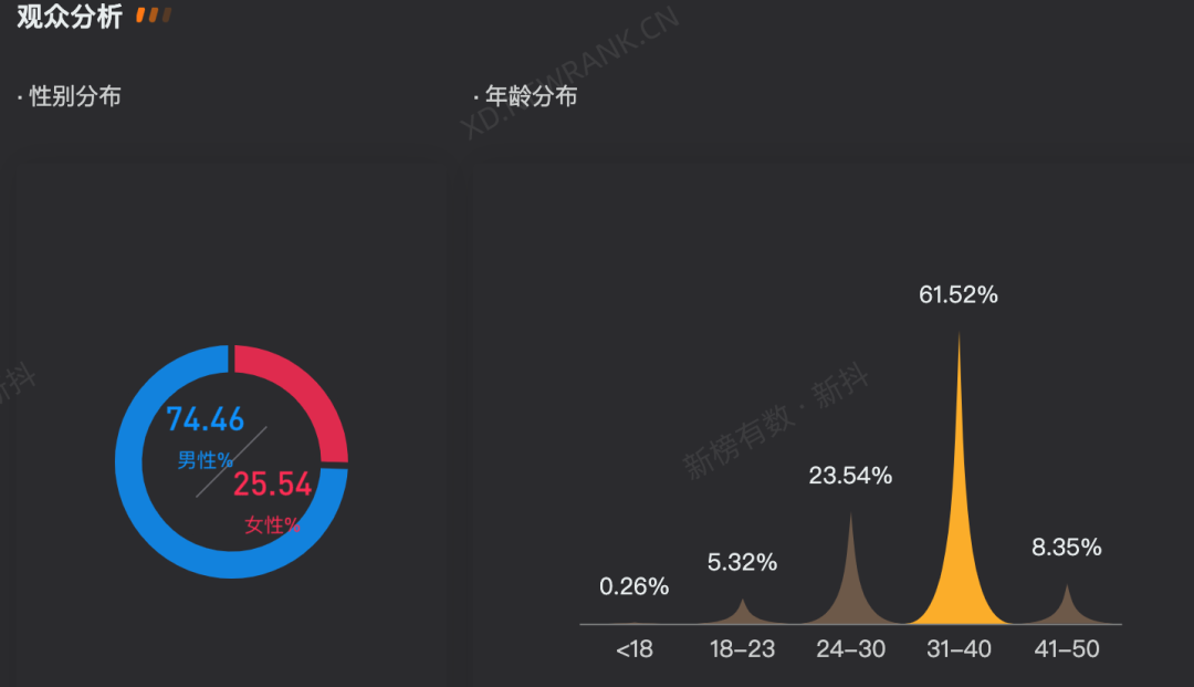 张同学抖音账号的男性粉丝占比74.46%;图源 / 新抖
