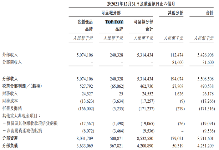 名创优品和TOP TOY两大品牌2021下半年收入利润概况