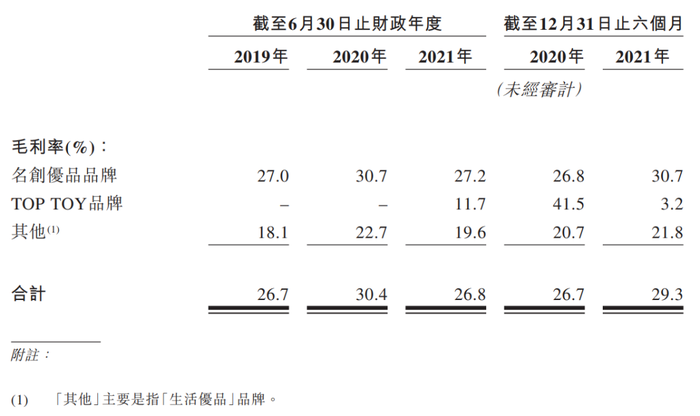 名创优品公司提到,向加盟商销售的比例显著增加,是TOP TOY品牌毛利率下降的主要原因。2021下半年,TOP TOY毛利率从2020下半年的41.5%下降到3.2%。