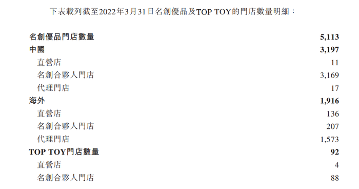 截至2022年3月31日,TOP TOY门店数达到92家,其中直营店4家、名创合伙人门店88家,又可分为11家梦工厂店与81家集合店。