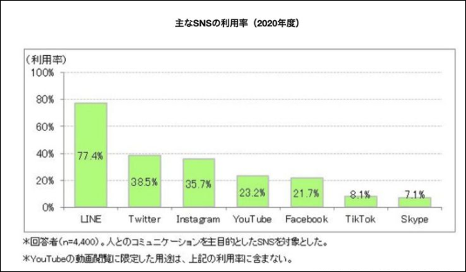 在后续几年的发展中,TikTok在日本全国保持了持续的高增长。2020年在日本境内的使用率从2018年的7.1%上升到了8.1%,这一数据在日本主流社交APP中排名第六。