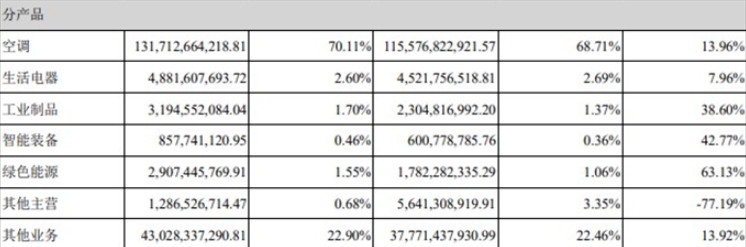 格力电器业绩主要依赖空调销售,业务单一被资本市场诟病已久。2021年,格力电器空调销售收入占营收比重达到70.11%,相比2020年增加1.40个百分点;其他生活电器销售收入占营收比重为2.6%。