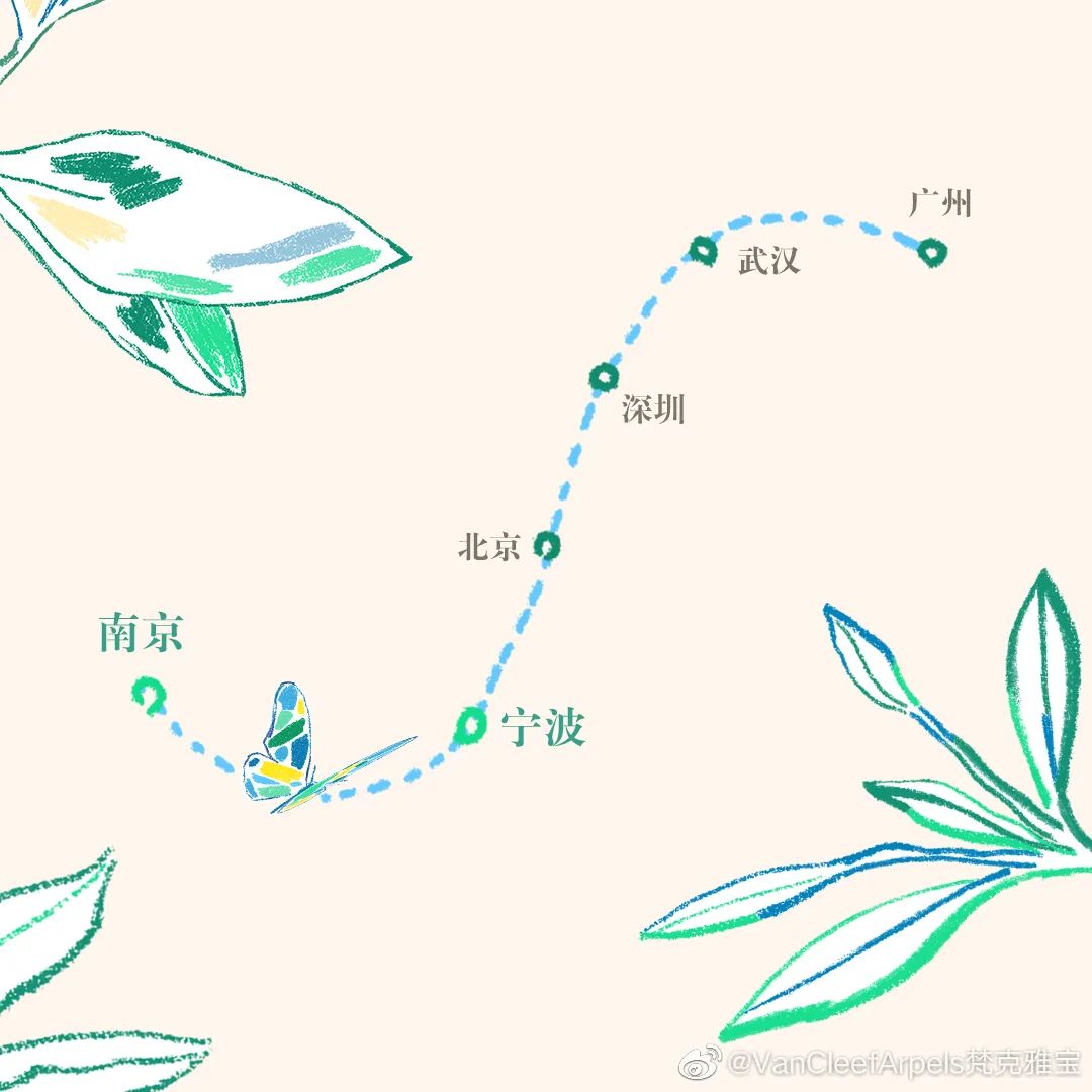 4月1日至6月12日间,梵克雅宝在中国7座城市的商业中心完成“春之花园”限时体验展的巡回展出,展览以南京德基广场(4月1日~17日)为起点,随后分别在宁波阪急百货(4月2日~13日)、北京 SKP(4月20日~27日)、深圳湾万象城(4月30日~5月8日)、上海港汇恒隆广场(4月30日~5月15日)、武汉国际广场(5月11日~22日)、广州太古汇(5月26日~6月12日)举行。