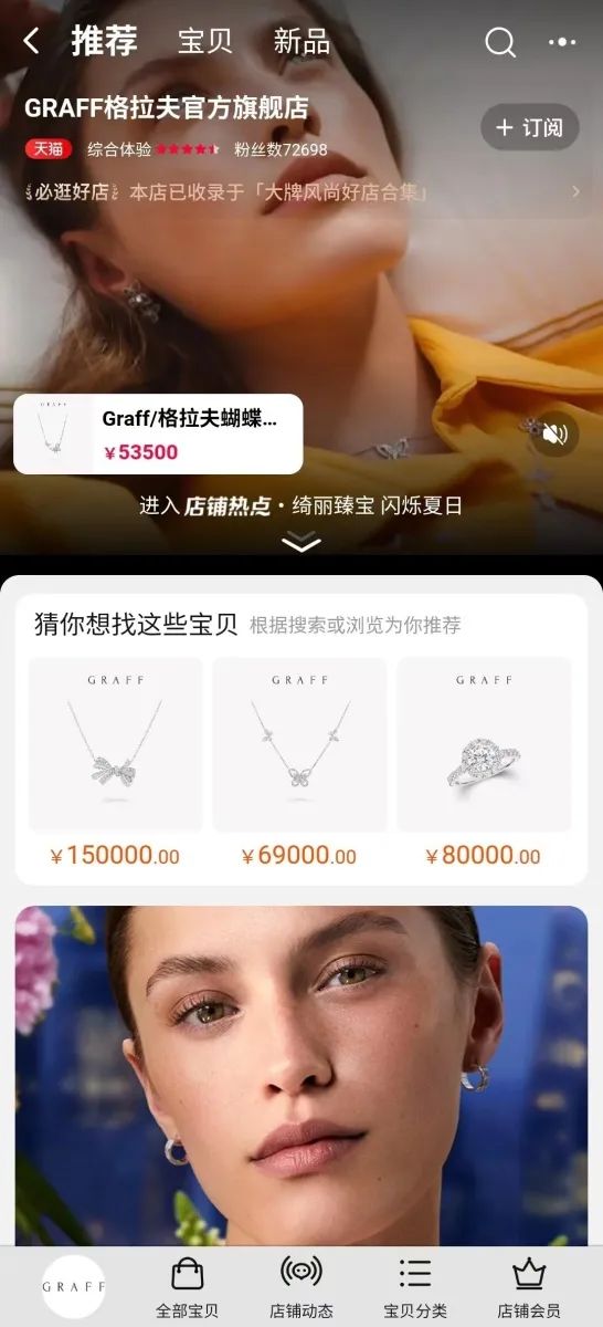 例如:2021年6月,格拉夫低调上线天猫官方旗舰店,出售品牌全系列产品,截至目前,该店铺的粉丝数量已达7.3万人。