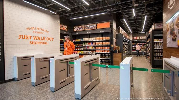2020年开始亚马逊重新出征,陆续在西雅图、旧金山、纽约等城市开设了多家Amazon Go无人便利商店和Amazon Fresh无人杂货店,华盛顿的一家杂货店面积甚至达到了2.5万平方英尺。顾客进店前在旋转门处用手机登录亚马逊账户,进店后正常选购商品,系统的摄像头会进行人脸识别,货架的传感器和摄像头会记录顾客拿起放下各种商品的行动并即时传送到app中自动完成结账,而顾客可以直接离开,这就是它所称的“免结账即走(Just Walk Out)”技术。