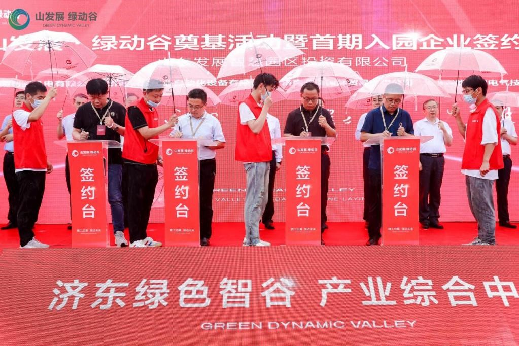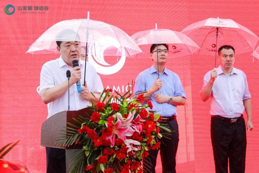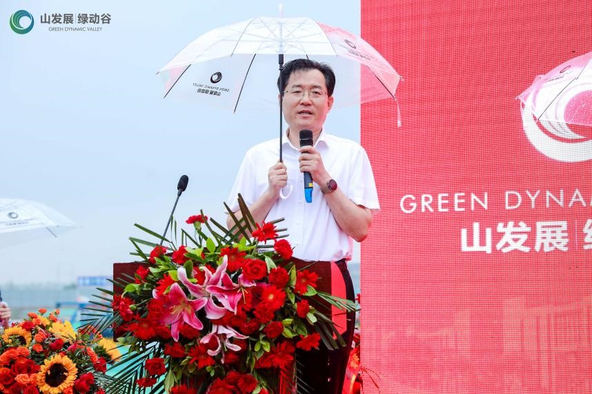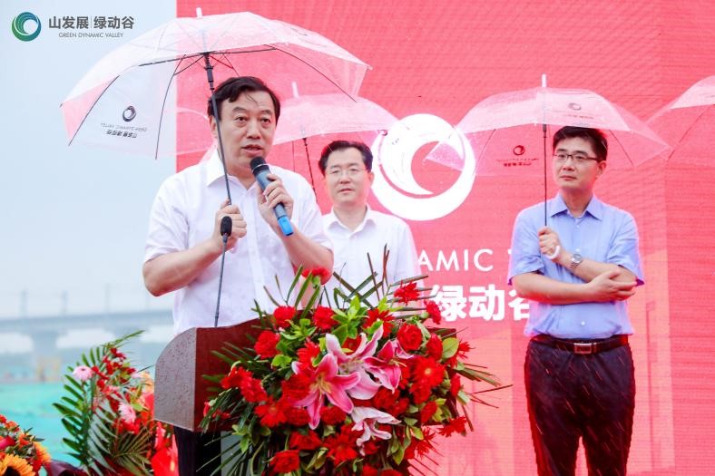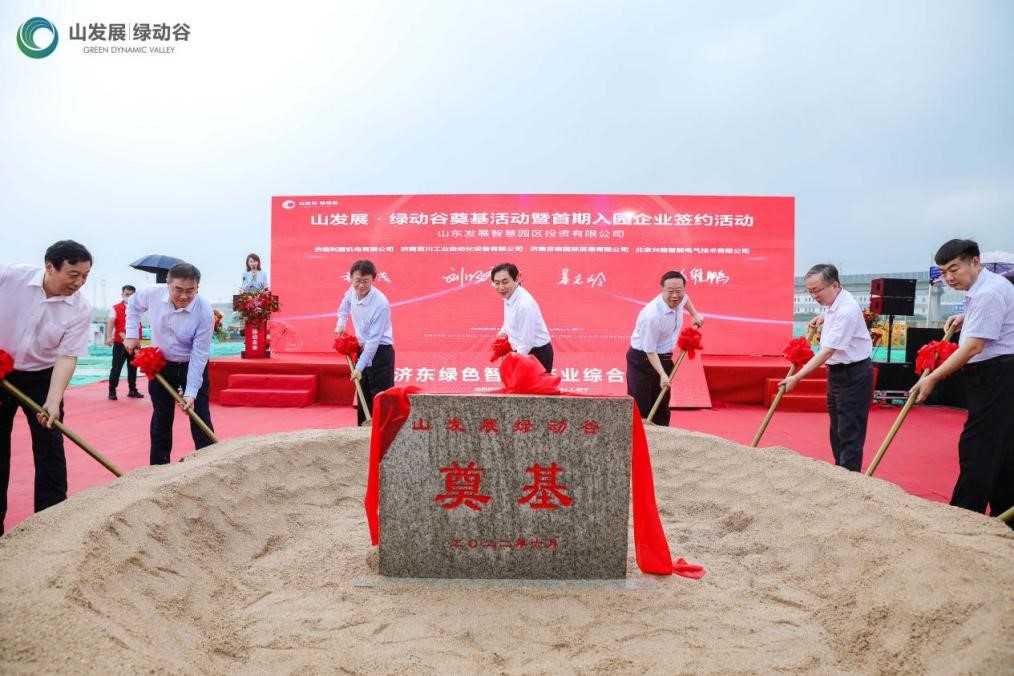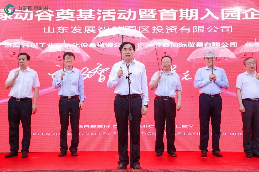 6月27日下午,山发展·绿动谷奠基活动暨首期入园企业签约活动在项目现场隆重举行。山东省工业与信息化厅副厅长王晓,济南市委常委、副市长王宏志,山东发展投资集团党委书记、董事长孟雷,党委副书记、总经理郭晓东,历城区区委书记张军,临港经济开发区管委会主任孟祥民等领导出席本次活动。王宏志副市长现场宣布山发展·绿动谷项目奠基开工。