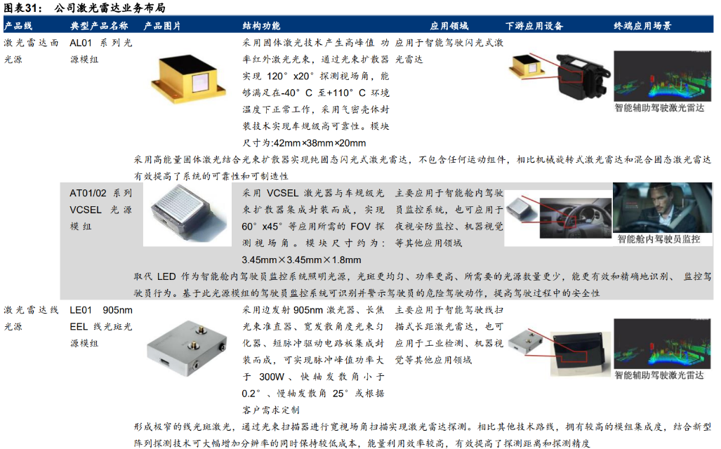 当前,公司已具备车规级激光雷达发射模组设计、开发、可靠性验证、批量生产等核心能力。