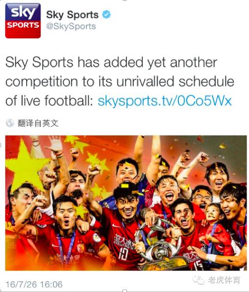 Sky Sports(天空体育电视台)在其官网和官方推特上宣布签下未来三年中超联赛转播权。SkySports将从本周第20轮开始直播2016赛季中超联赛,每轮直播两场。