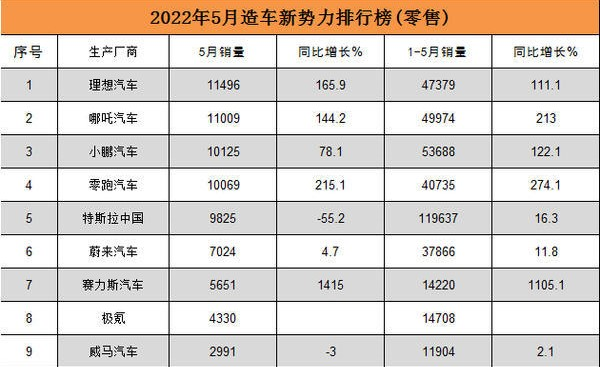 这个累计数据不仅被零跑4万多的交付量和274%的增速远远甩在后面,就连赛力斯,在华为的加持下,这五个月的交付量也达到了1.4万辆,而增速更是达到了骇人听闻的1105%(主要是5月交付5651台,增速1415%)。