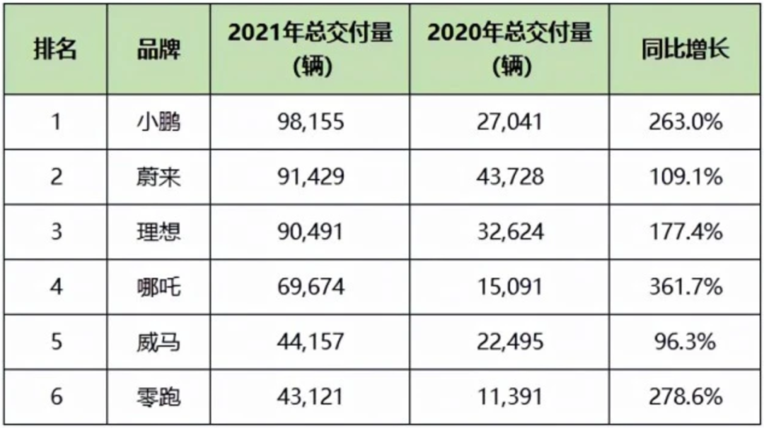 2021年,威马卖出了4万多台汽车,名列造车新势力第5位,稍高于零跑,不过增速只有96.3%,没跑赢大盘,在一、二梯队的造车新势力里,是唯一一家增速只有两位数的车企。