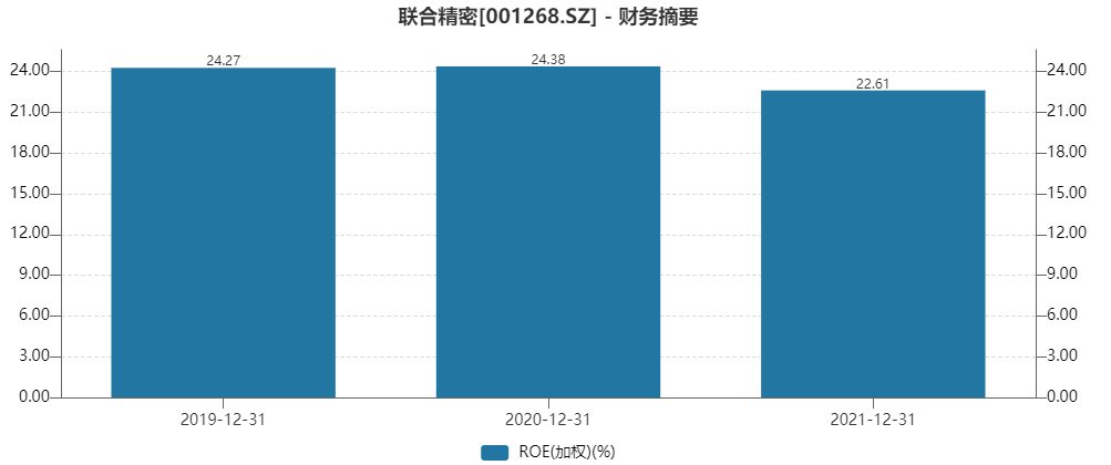 公司总体盈利能力不断增强,公司2019年、2020年和2021年净资产收益率分别为24.27%、24.38%和22.61%。