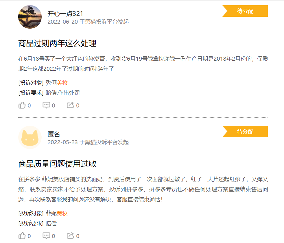据星图数据,今年618全网美妆卖了410亿。然而,喜人的数据背后也暗藏乱象,化妆品观察查询黑猫投诉平台发现,有关“美妆”的投诉共计7666条结果,其中大多为产品问题,包括质量差、假冒伪劣、使用后过敏等反馈。