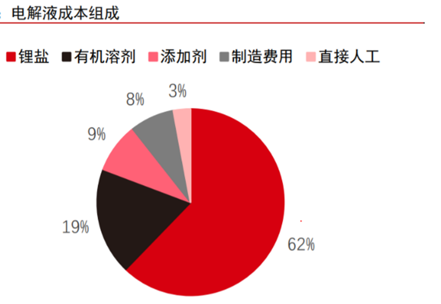 溶质锂盐作为电解液的核心组分,其在电解液质量占比仅约 13%,但在电解液制造成本占比约 62%,因此锂盐的成本会很大程度限制其在电解液中的应用。
