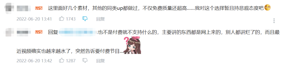 在内容并没有新鲜感的情况下,很多付费观众认为视频定价有些虚高,30元的价格已经接近B站季度会员的费用。