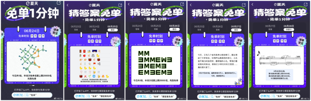 此后的几天内,饿了么适当降低了题目的难度和出格度,以限制免单名额上限的方式有效控制参与人数,推动活动逐渐步入正轨。