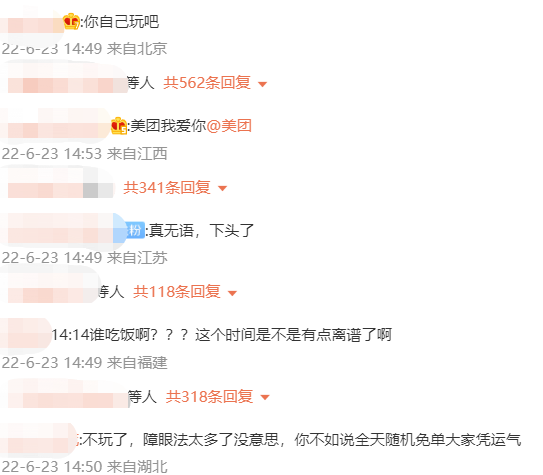 不过此次试题的答案却遭到了众人质疑。一方面,官方将答案“根号二”中的“二”解释为棚子下方的“两个人”显得毫无逻辑且过于牵强,对于耗费了一上午时间解题的网友来说难以服众;另一方面,前一天提供的时间线索对受众产生了明显的导向作用,令人不禁怀疑是否官方有意引导错误方向,借此收割一波“韭菜”。在当天的官博评论区内,不少网友也对此发表了愤怒,可见,该活动在保障用户体验上显然缺乏一定的策划力。