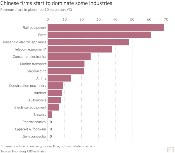 从全球角度看,中国企业占据绝对主导地位的两个行业——铁路设备和港口建设——跟千禧一代的影响力没什么关系。港口建设与铁路设备公司进军海外得到了巨大的国内基建市场以及中国国家开发银行(CDB)和中国进出口银行(Export-Import Bank of China)的慷慨融资的支撑。