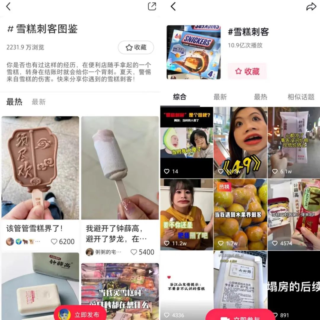 当下的网红雪糕界也正在经历一个祛魅的过程,这从最近频上热搜的“雪糕刺客”话题,便能看出年轻人苦于网红雪糕价格久矣。在小红书和抖音上,关于雪糕刺客话题热度分别为2231.9万次浏览和10.9亿次播放量。