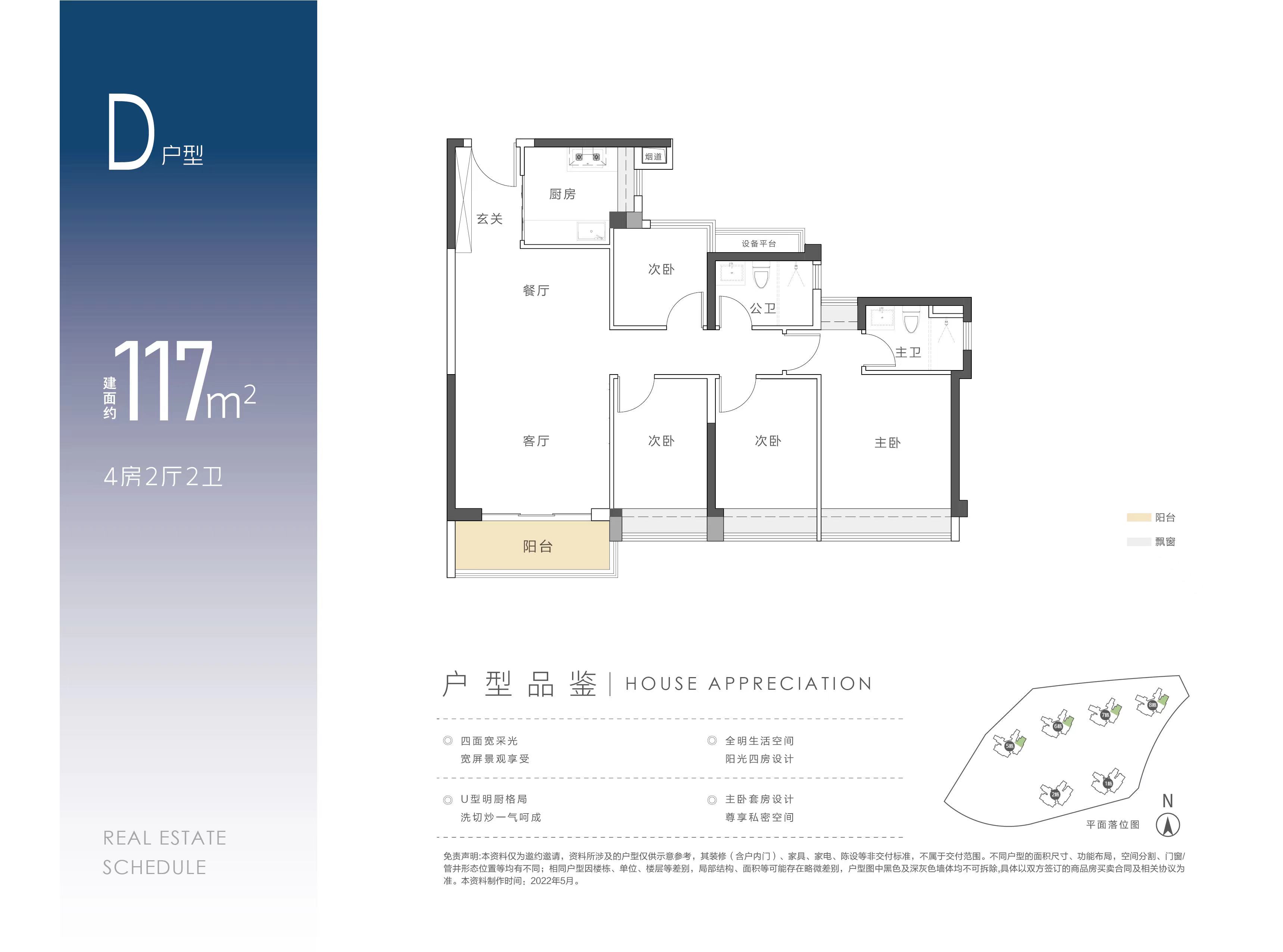建面约117平方米的户型为四房两厅两卫,空间利用较高。