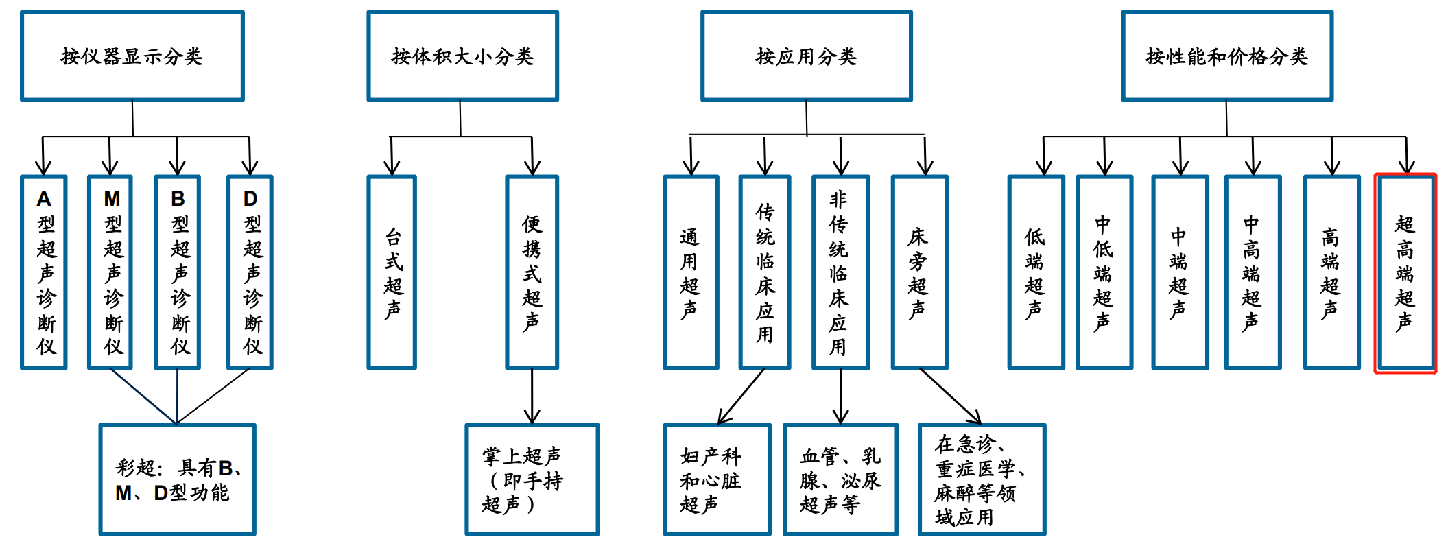 常见的超声诊断仪分类方式(来源:《超声医学基础》、IHS Markit、国信证券经济研究所)