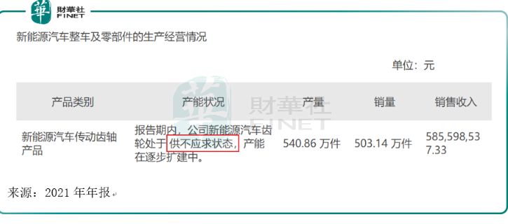 下游需求广阔,也带动了双环传动的产销情况大好。根据2021年的年报描述,报告期内,公司新能源汽车齿轮处于供不应求状态,产能在逐步扩建中。