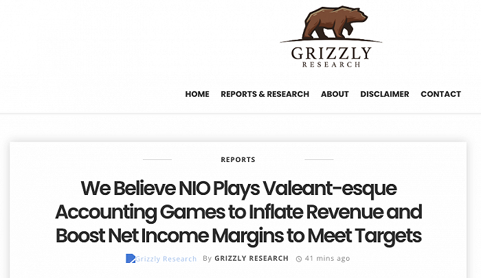 6月28号晚,做空机构灰熊(Grizzly Research)发布报告称,凭借出色的经营业绩,蔚来股价自2020年以来已上涨超过450%,使其成为中国最有价值的电动汽车公司之一。