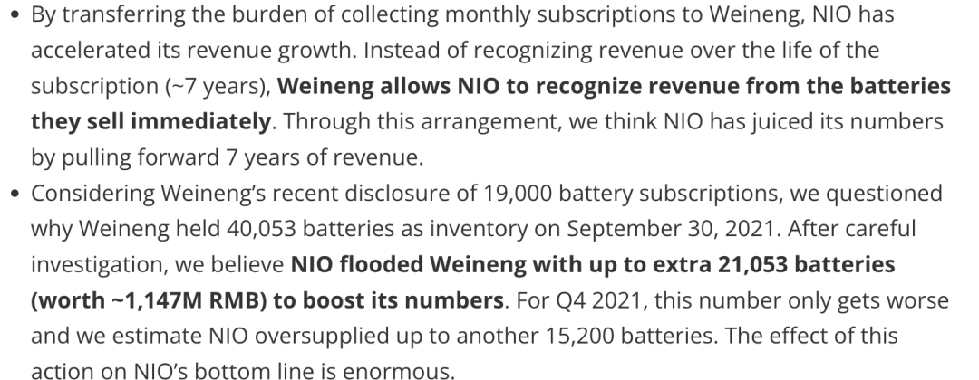 灰熊表示,通过这种方式,蔚能帮助蔚来报告增加14.7亿人民币的收入,和2.94亿人民币的净收入。截至2021年9月的9个月内,蔚来的净亏损应该高出95%。