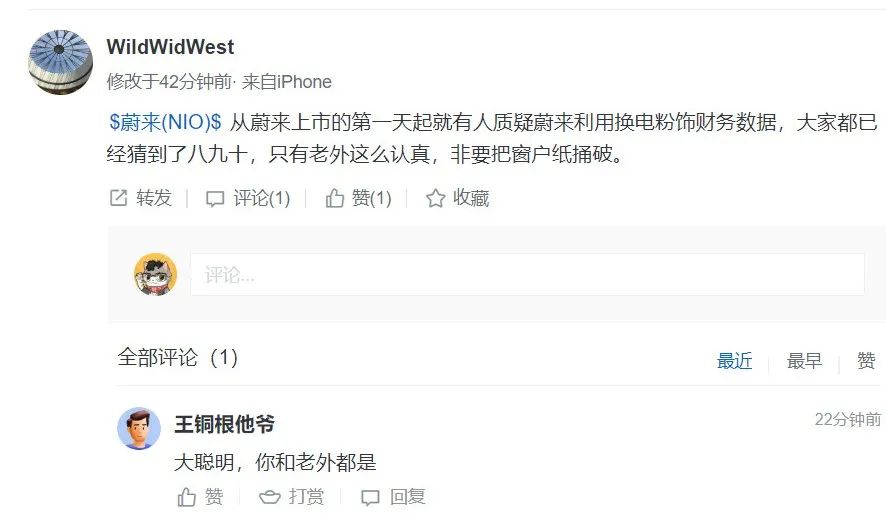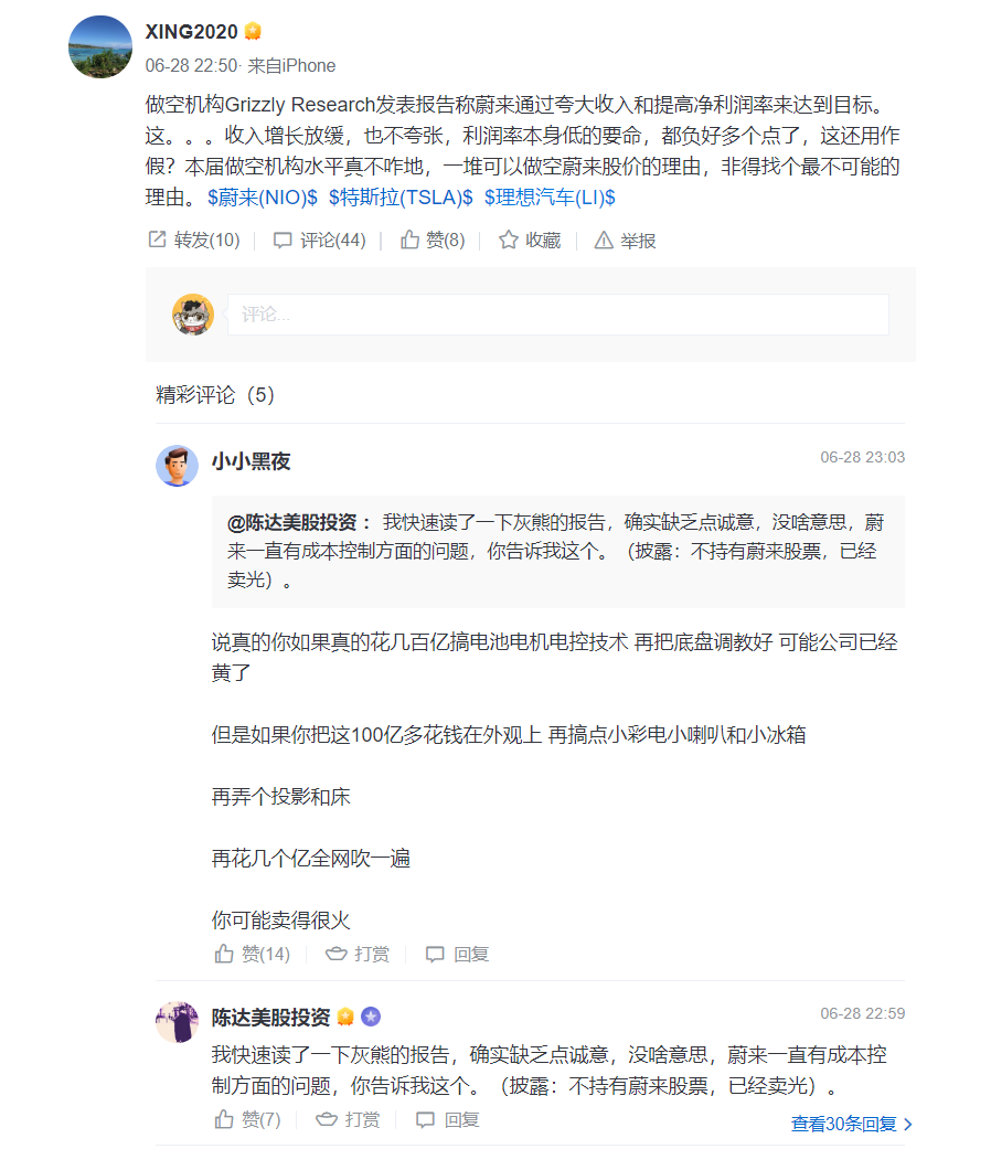 另有网友表示,一堆可以做空蔚来股价的理由,非得找个最不可能的理由!灰熊这份报告,缺乏诚意。