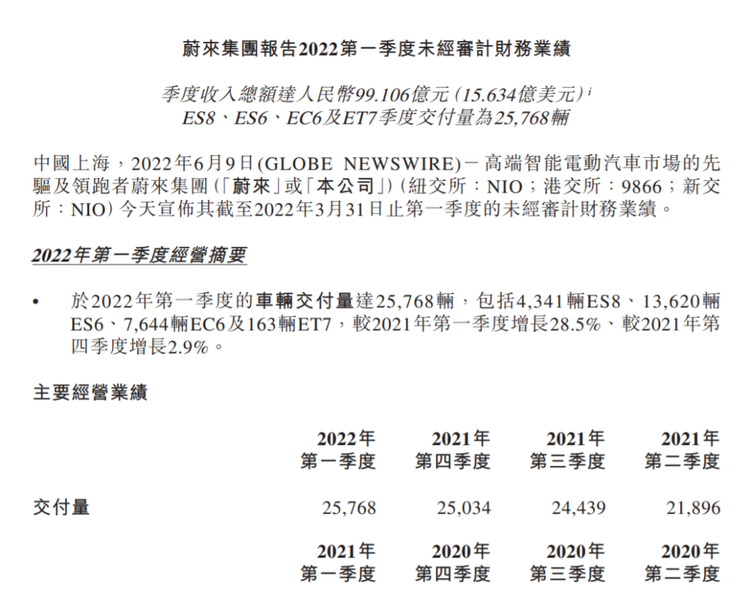 此前发布的2022年第一季度财报显示,蔚来实现营收99.11亿元,同比增长24.39%,但盈利不及预期,净亏损达到17.83亿元,2021年同期亏损4.5亿元,同比扩大295.56%。