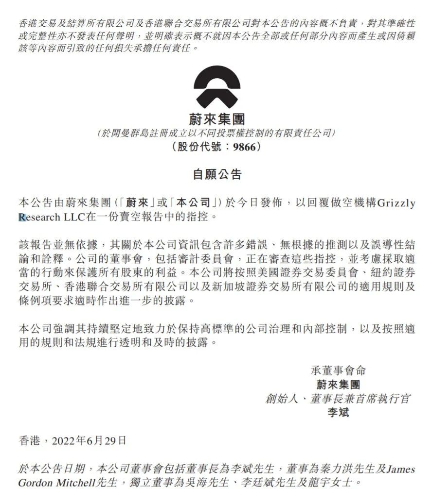 对此,蔚来回应称,公司已观察到这份报告,该报告内容充满了大量不实信息以及对蔚来披露信息的误读,蔚来一直严格遵守上市公司相关准则,目前已针对该报告启动相关程序,请关注后续公告。