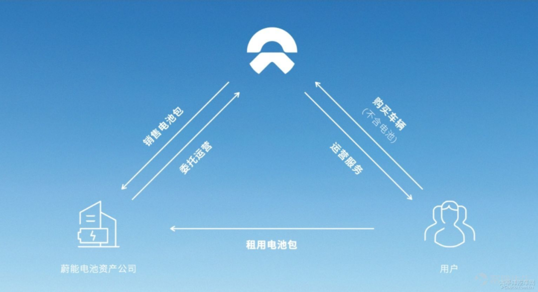 用户、蔚来、蔚能三者的关系可以简单描述为:用户向蔚来买不包含电池的车、用户从蔚能租用电池、蔚能向蔚来买电池。